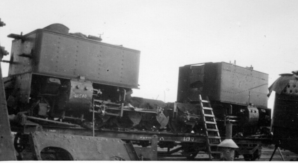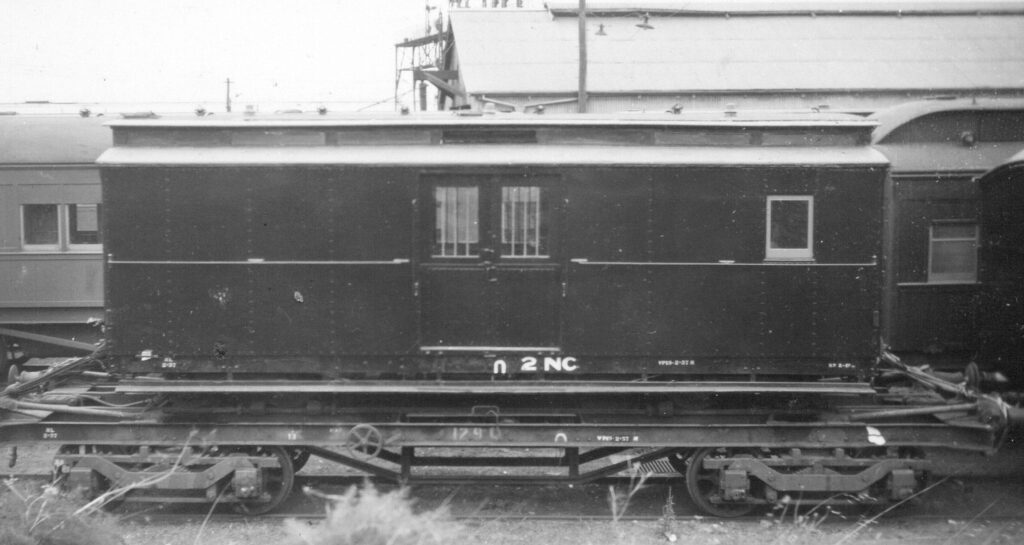 One unusual wagon built at Newport that is ‘one of a kind’ but was extremely useful is 129Q. One hundred and thirty-six Q wagons were built at Newport for the broad gauge network with many of them being modified to transport specific loads. Some were even modified for carrying Pintsch gas with a small pump motor cabin at one end and a tank for carrying gas at the other. When the VR ordered two Beyer garratts for the narrow gauge in 1926, Newport built a special Q class wagon numbered 129Q, to transport the two engine units of the locomotive. The boiler was loaded onto a separate flat wagon. 129Q is just a skeleton frame with heavier axle bearings and boxes from broad gauge steam locomotives, it has hinged buffers that drop down out of the way during loading/unloading, and ‘strap’ rail along the deck and extra tie-down points. From 1926 on, all four narrow gauge lines had roll-on roll-off loading ramps built, and it was a simple shunting move plus tie down time and the locomotive or rolling stock was ready to go. It was still quite a job to separate the engine units of a Garratt from the boiler, but at least the two engine units would fit on the wagon together and were able to be rolled on and off. I read many years ago that prior to 129Q being built, it took a team of one fitter plus a couple of helpers two days to jack up an NA locomotive to get it ready to travel. The front and rear pony wheels had to be removed and loaded into a separate wagon. Special pivot plates had to be bolted on underneath, and then the locomotive was carefully lowered onto a pair of broad gauge bogies. The front and rear couplings also had to be removed and a special hook coupling plate bolted on plus a heavy plate with buffer bolted on each corner so it could be attached to the screw link coupling on a broad gauge wagon. 129Q is a special part of the history of the Newport railway workshops and fortunately, it still exists and is on public display at the Puffing Billy Museum at Menzies Creek. Photos credits:• 6A on transfer bogies 1926. and 2A on 129Q at Newport 1929. Terry Middleton. • 2NC on 129Q in Spencer St pass yard 22 Feb 1957, and G41 engine units on 129Q at Newport in 1941. Late S. C. Whalley• 14A after overhaul at Bendigo in storage in East Block at Newport 18 Oct 1966, 14A out of storage, still on 129Q but in the Melbourne goods yard 15 Dec 1965 on the way to Belgrave, and 7A on route to Belgrave passing through Box Hill 5 May 1962. Len Whalley.